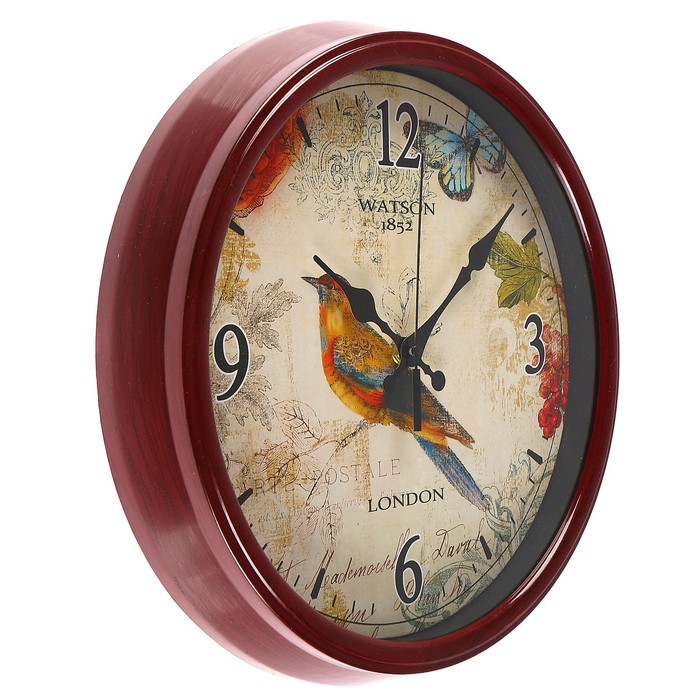 Часы настенные классика сюжет, Птица, толстая коричневая рама, d=33,5см