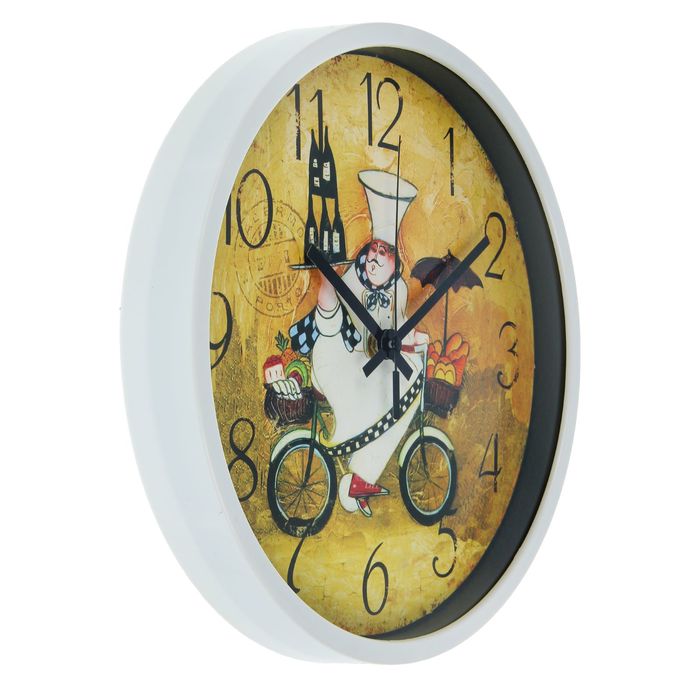 Каждому хозяину периодически приходит мысль обновить свою квартиру, сделать ремонт, перестановку или кардинально поменять внешний вид каждой комнаты. Часы настенные круг, Повар на велосипеде, d=30см — привлекательная деталь, которая поможет воплотить вашу интерьерную идею, создать неповторимую атмосферу в вашем доме. Окружите себя приятными мелочами, пусть они радуют глаз и дарят гармонию.