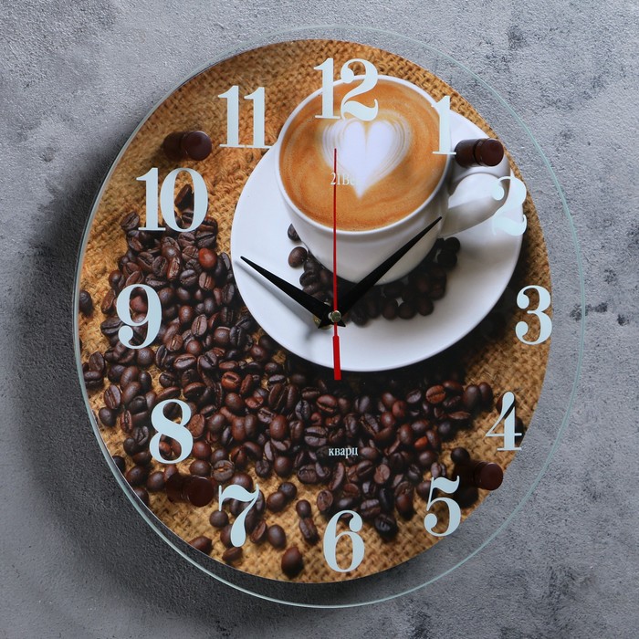 Часы настенные круглые "Чашка с кофе", 30х30 см микс