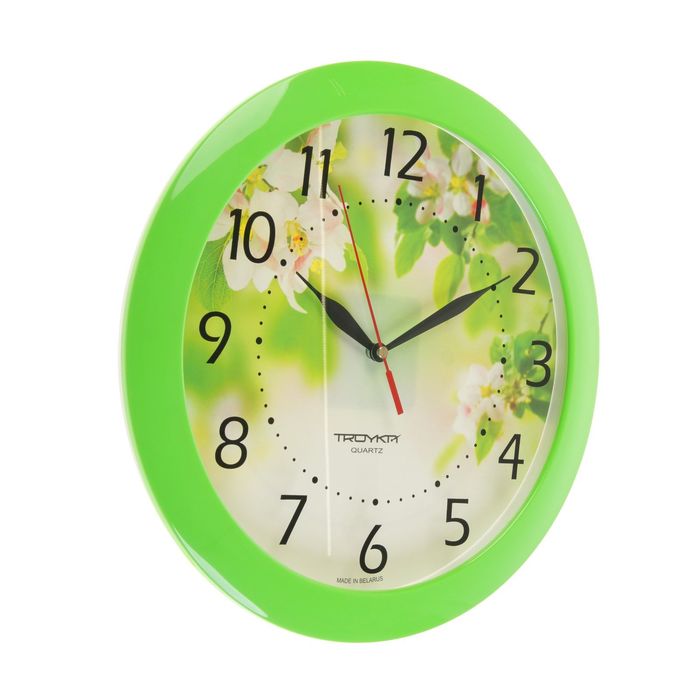Часы настенные круглые "Цветы", зеленый обод, 29х29 см