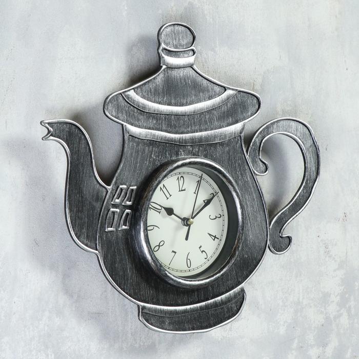 Часы настенные кухонные "Чайник с ручкой", хром с напылением
