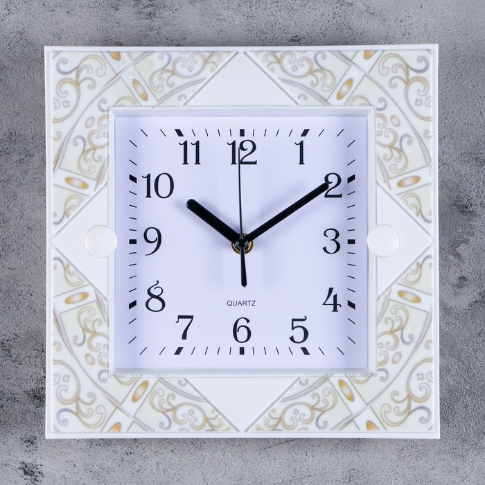Часы настенные квадрат, рама с цветами, 25,5*25,5*3