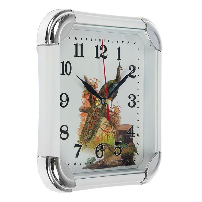 Часы настенные квадратные "Павлин", с закруглёнными краями, белый обод, малые