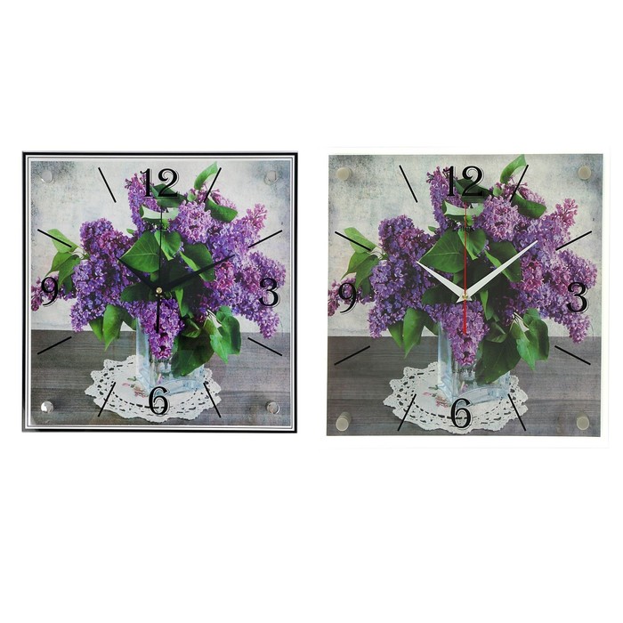 Часы настенные квадратные "Сирень в вазе", 35х35 см микс