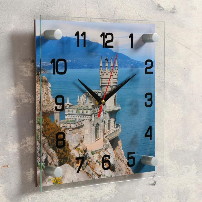 Часы настенные квадратные "Замок на обрыве скалы", 25х25 см микс