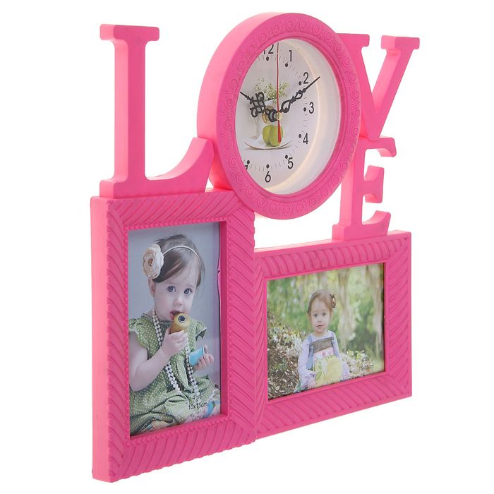 Каждому хозяину периодически приходит мысль обновить свою квартиру, сделать ремонт, перестановку или кардинально поменять внешний вид каждой комнаты. Часы настенные Love, розовые + 2 фоторамки 10 × 15 см — привлекательная деталь, которая поможет воплотить вашу интерьерную идею, создать неповторимую атмосферу в вашем доме. Окружите себя приятными мелочами, пусть они радуют глаз и дарят гармонию.