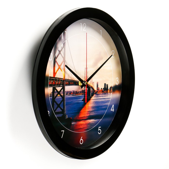 Часы настенные "Мост", чёрный обод, 28х28 см, микс