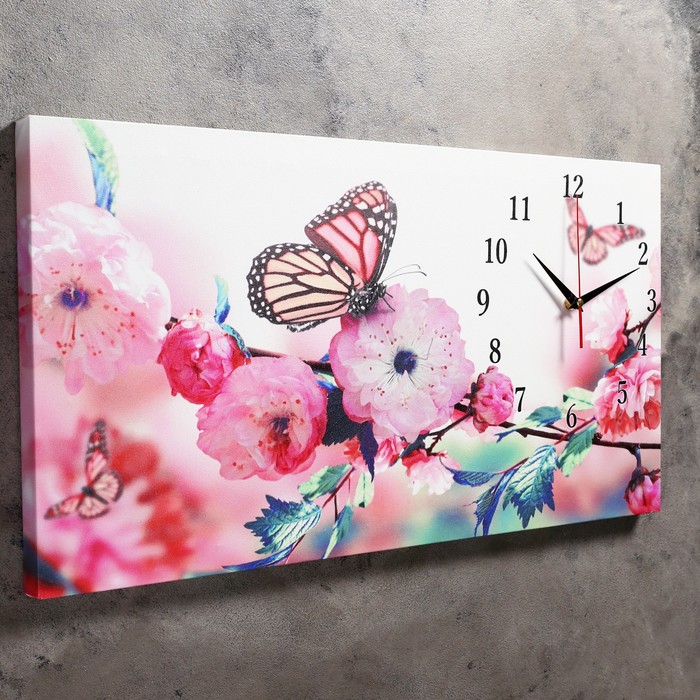 Каждому хозяину периодически приходит мысль обновить свою квартиру, сделать ремонт, перестановку или кардинально поменять внешний вид каждой комнаты. Часы настенные на холсте "Бабочки в цветах", 40х76 см микс — привлекательная деталь, которая поможет воплотить вашу интерьерную идею, создать неповторимую атмосферу в вашем доме. Окружите себя приятными мелочами, пусть они радуют глаз и дарят гармонию.