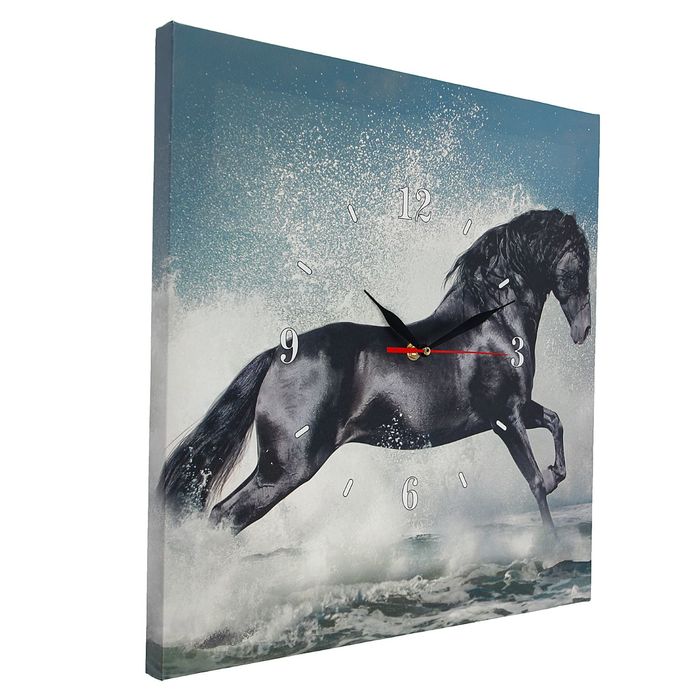 Часы настенные на холсте "Вороной конь в воде", 40х40 см