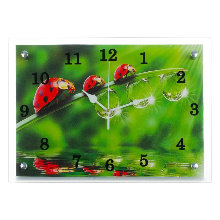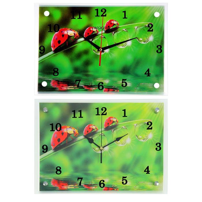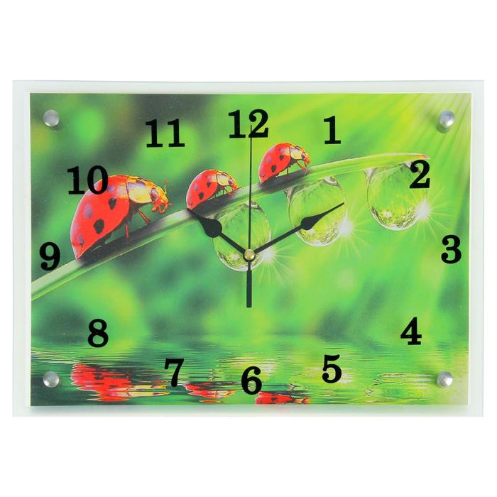 Часы настенные прямоугольные "Божьи коровки и роса" микс 25х35см
