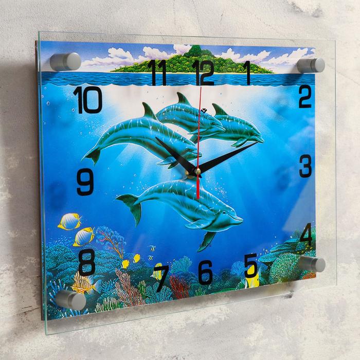 Часы настенные прямоугольные "Дельфины", 25х35 см