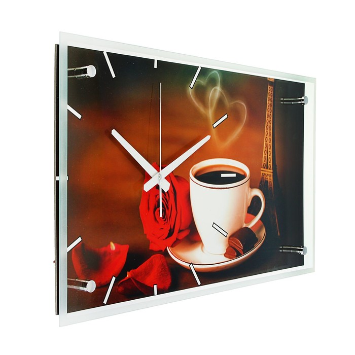 Часы настенные прямоугольные "Кофе и роза", 36х60 см
