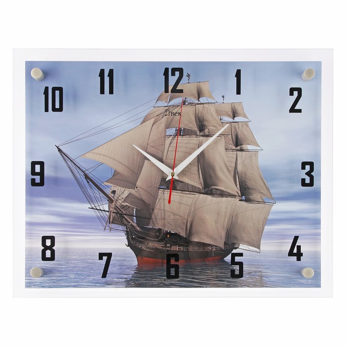 Часы настенные прямоугольные "Корабль", стекло, 35х45 см микс