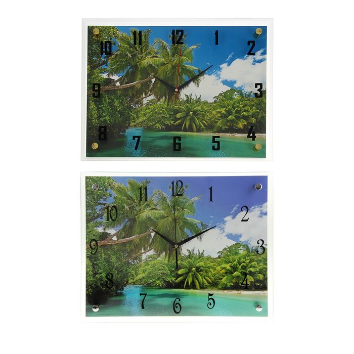 Часы настенные прямоугольные "Пальмы" стекло 35х45 см микс