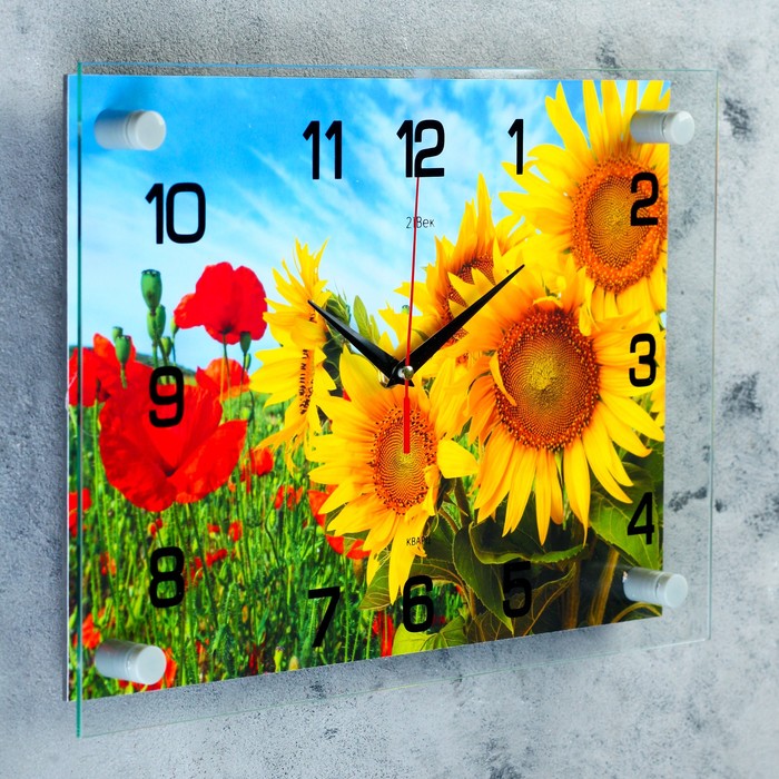 Каждому хозяину периодически приходит мысль обновить свою квартиру, сделать ремонт, перестановку или кардинально поменять внешний вид каждой комнаты. Часы настенные прямоугольные "Подсолнухи и Маки" 25х35 — привлекательная деталь, которая поможет воплотить вашу интерьерную идею, создать неповторимую атмосферу в вашем доме. Окружите себя приятными мелочами, пусть они радуют глаз и дарят гармонию.