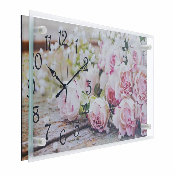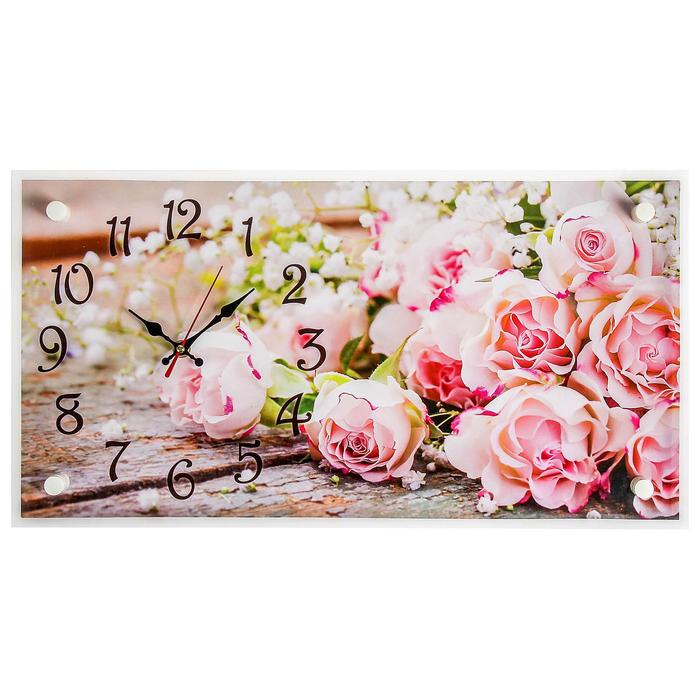 Часы настенные прямоугольные "Розы", 26х52 см микс