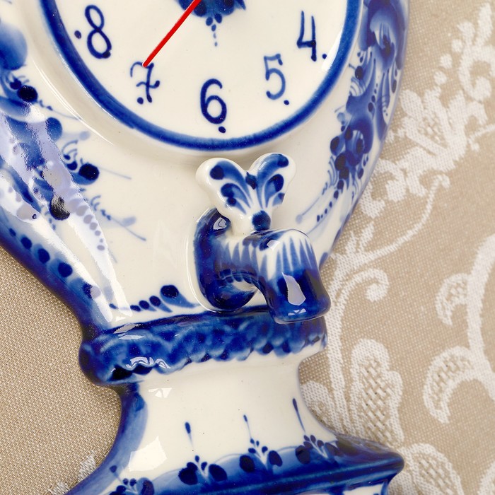 Собственный стиль Гжели — синие и голубые узоры, растительный орнамент и витиеватые украшения на белом фоне. Роспись производится кобальтом, который в ходе технологического процесса приобретает характерный для Гжели синий цвет. Мастера расписывают каждое изделие только вручную. В каждом предмете легко и непринуждённо варьируются букеты и гирлянды, вводятся геометрические пояски, похожие на вязаное кружево, изделия украшает декоративная лепнина, изображаются пейзажные сюжеты.
