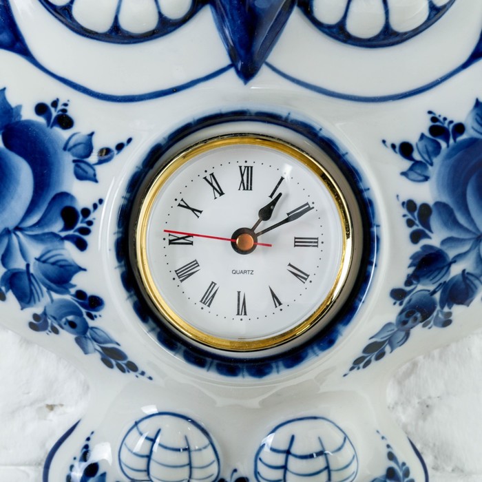 Очаруйте ваших гостей исконно русской красотой с помощью гжели. Часы «Сова», 24х27,5 см, гжель — посуда, изготовленная вручную из высококачественной глины, декорированная традиционной авторской росписью. Она станет изящным дополнением для вашей кухни.