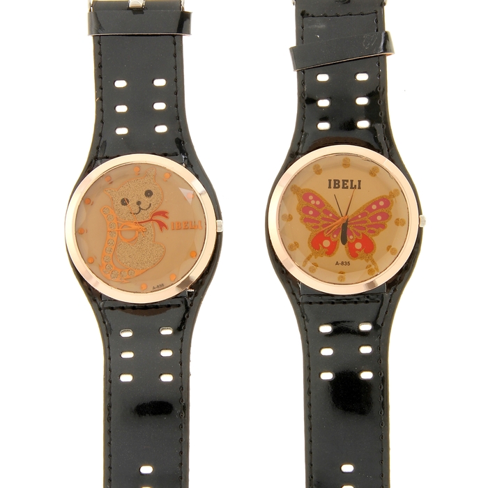 Часы женские "IBELI" микс, темный циферблат, черный широкий ремешок