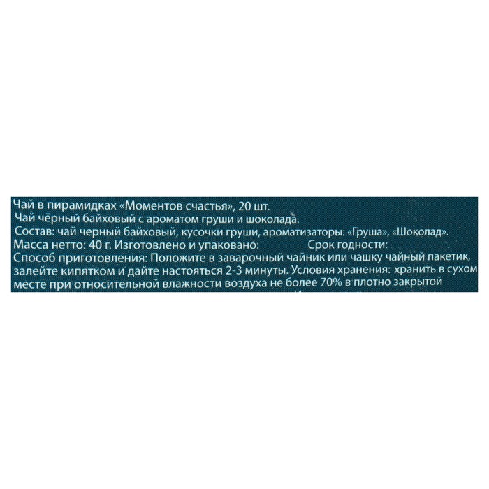 Чай чёрный с шоколадом и грушей в пирамидках "Моментов счастья", 20 шт.