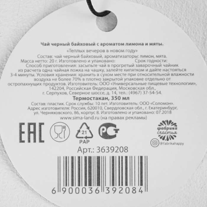 Чай лимон и мята 20 гр. в термостакане "Теплых вечеров в новом году"
