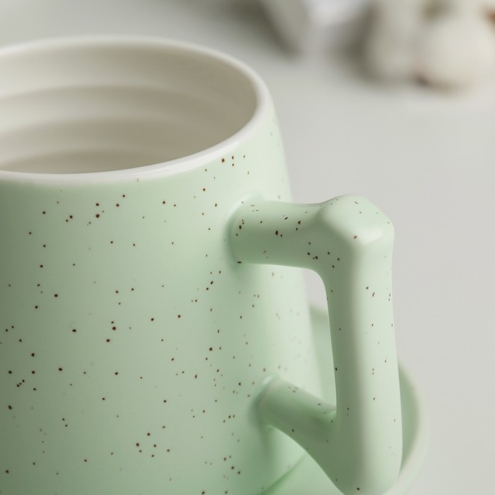 Чайная пара 400 мл "Крапинка", блюдце 14 см, цвет зеленый