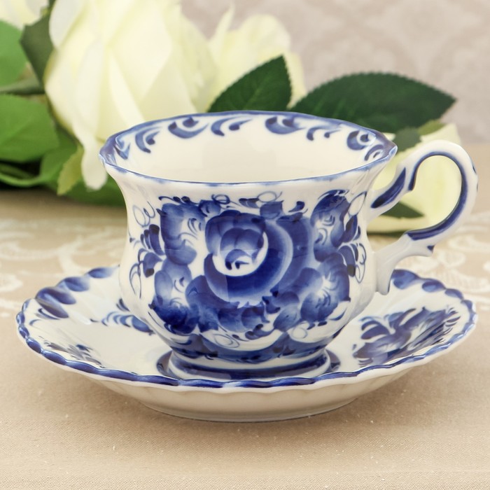 Гжель словно вобрала в себя красоту русской зимы: белизну снега, твёрдость льда, сияние инея, вычурность морозных узоров, синеву неба в ясные дни.