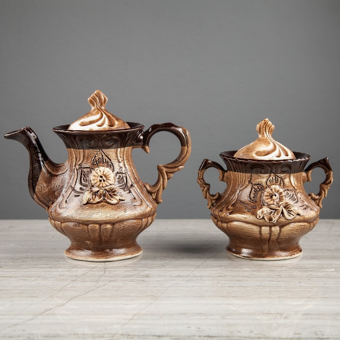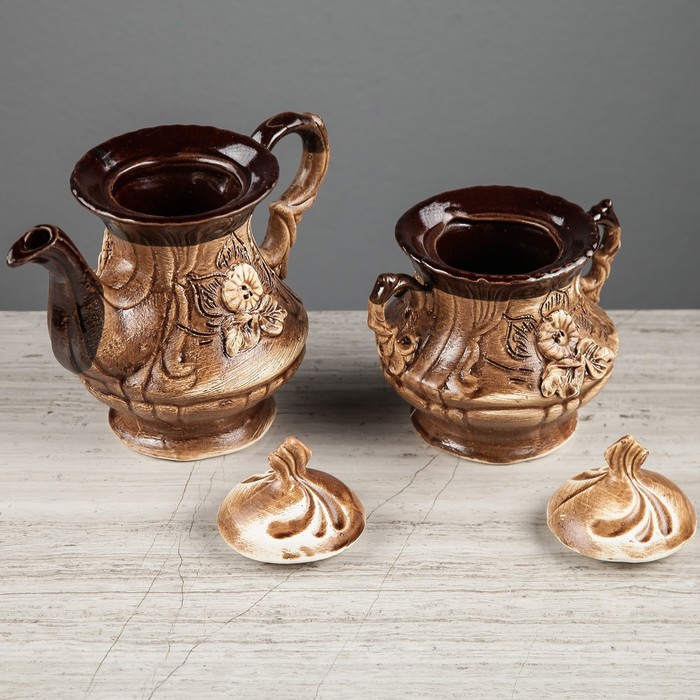 Все предметы набора изготовлены вручную из керамики. Этот экологически чистый материал легко переносит высокие и низкие температуры, устойчив к царапинам, потёртостям, не имеет запахов и примесей. Керамическая посуда хорошо держит тепло напитка, не влияя на его вкус.