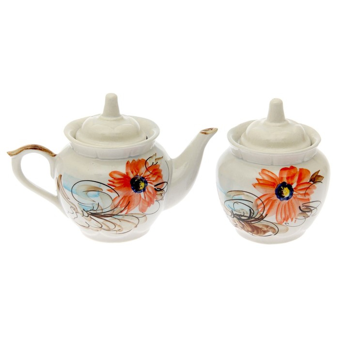 Чайная пара "Цветы" чайник и сахарница, 0,475 л, микс