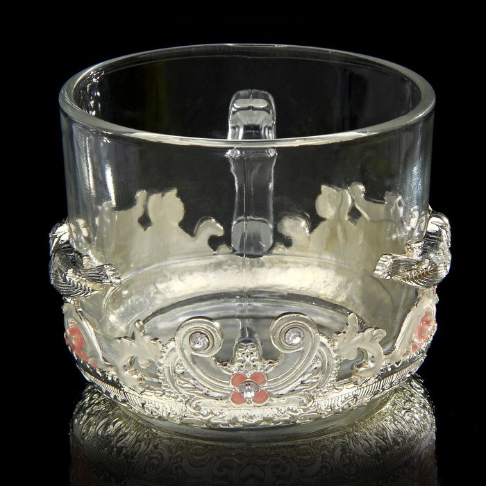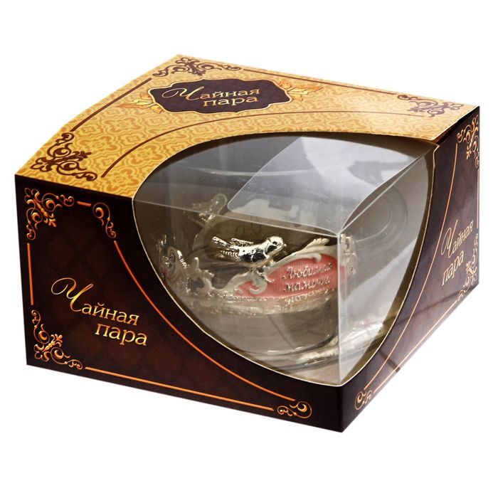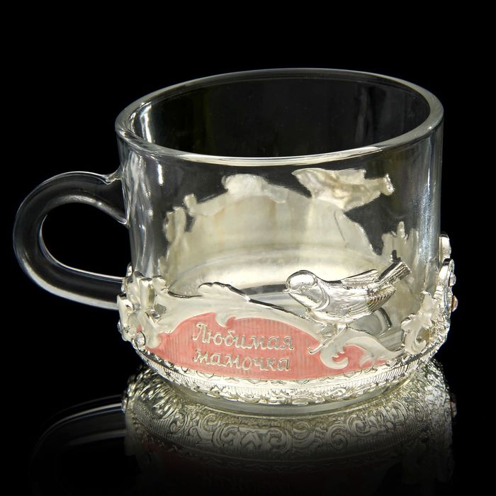 Чайная пара "Любимая мамочка", чашка 200 мл, блюдце 13,5 см — это замечательный и памятный подарок на любой случай. Оригинальный декор не оставит равнодушными ваших близких, ведь это не просто кружка, но и награда. Набор выполнен из высококачественного стекла и украшен металлическими элементами со стразами. Изделие не боится высоких температур.