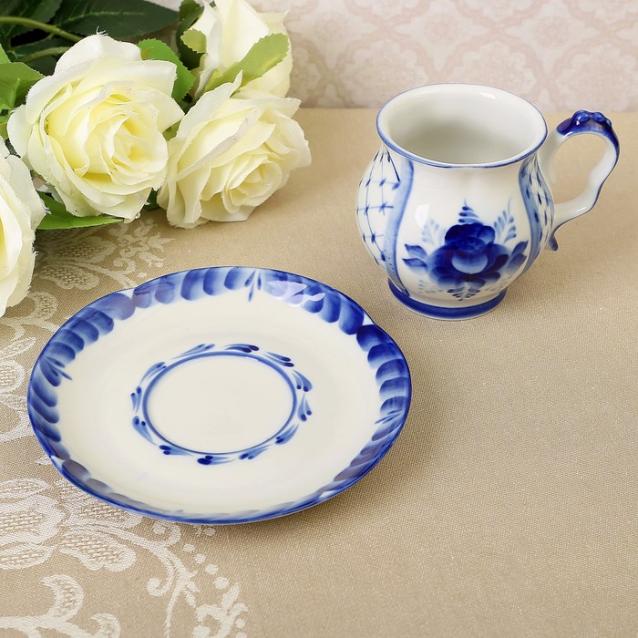 Чайная пара «Весенняя», гжель, кобальт, 2 сорт