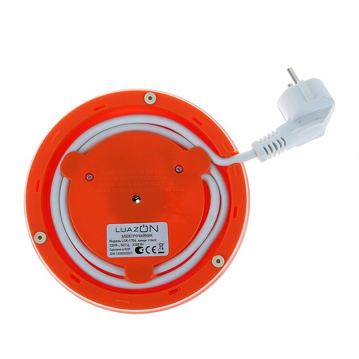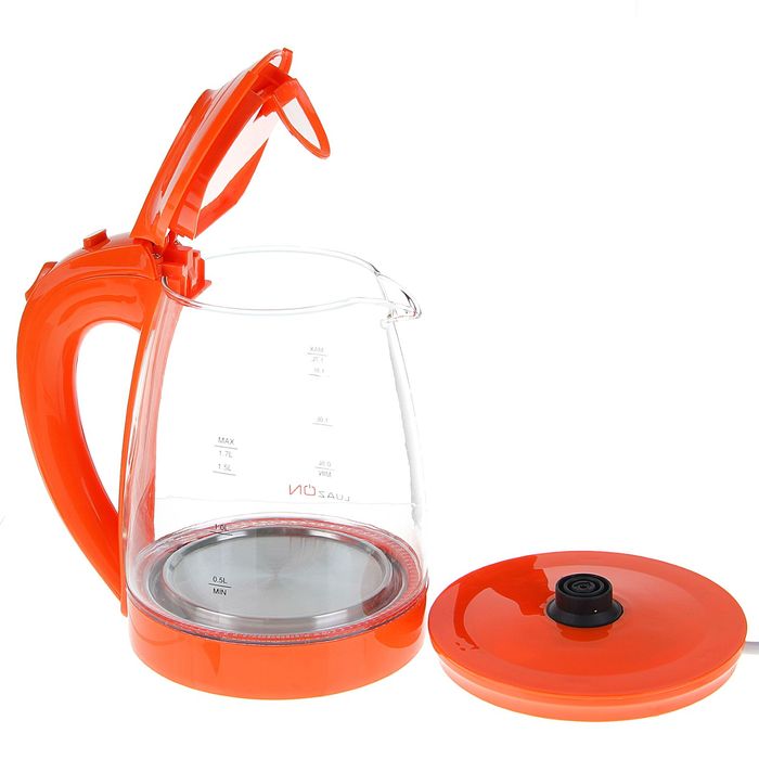 Чайник электрический LuazON LSK-1706, 2200 Вт, 1.7 л, стекло, оранжевый
