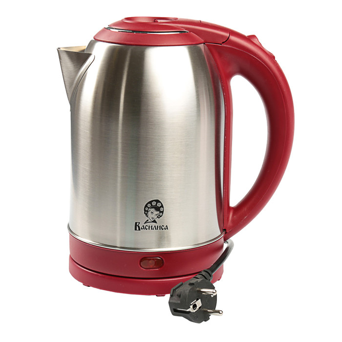 Чайник электрический ВАСИЛИСА Т33-2000, 2000 Вт, 2 л, серебритый-красный