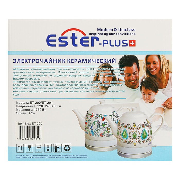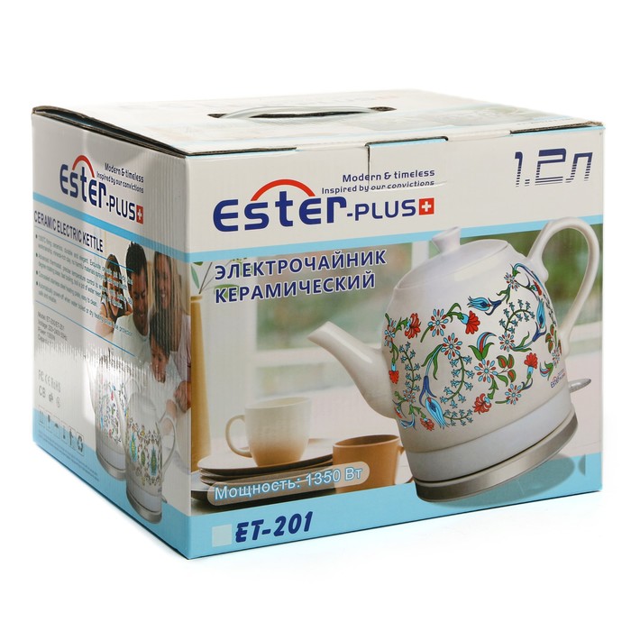 Чайник Ester Plus ET - 200, 1350 Вт, 1,2 л, керамика