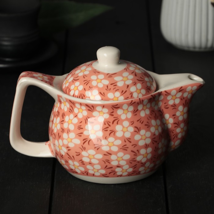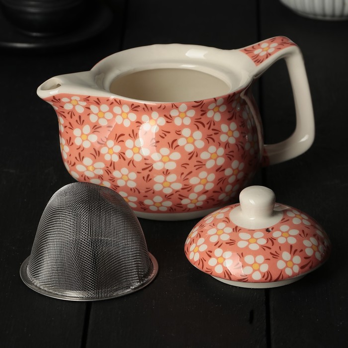 Чайник заварочный 350 мл "Весеннее цветение", с металлическим ситом, цвет оранжевый