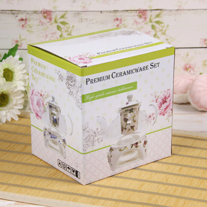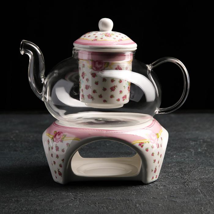 Чайник заварочный 800 мл "Софи", с керамическим ситом и подставкой для подогрева