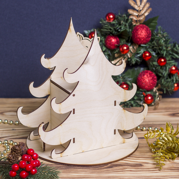 Чайный домик для декора"Елочка с шишками" из фанеры, набор 15 деталей 20,5х19х21 см