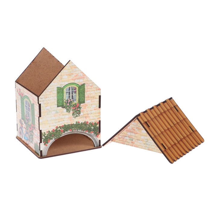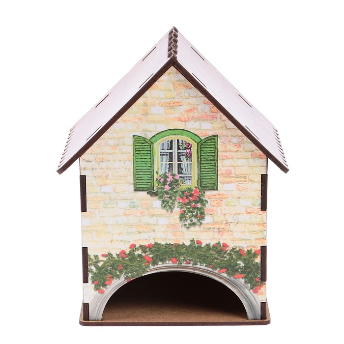 Чайный домик "Домик с зелеными ставнями и велосипедом" 15х10х10 см