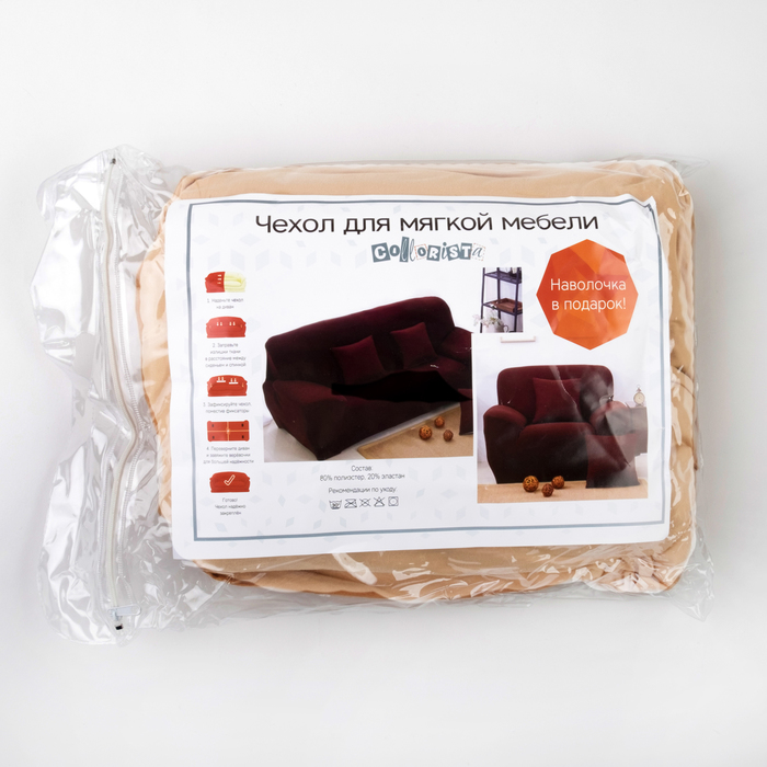 Чехол для мягкой мебели Collorista на кресло,наволочка 40*40 см в ПОДАРОК,бежевый