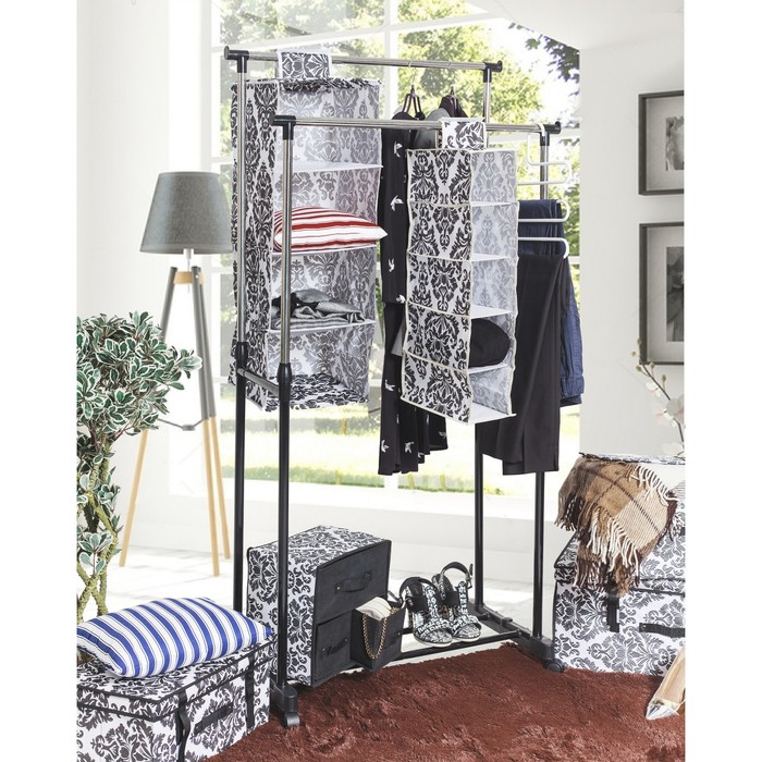 - Опрятный внешний вид. Больше никаких платьев, кофт и юбок, висящих вразнобой. Аккуратные чехлы позволяют рассортировать одежду и скрыть её от посторонних глаз. Для людей, использующих стойки вместо обычного шкафа— это самый оптимальный вариант.