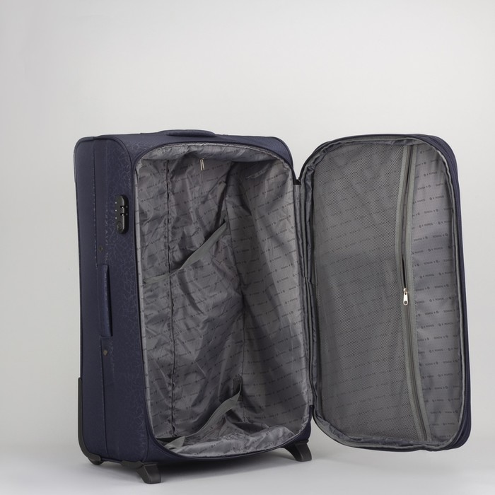Чемодан большой 28", отдел на молнии, с расширением, 2 наружных кармана, кодовый замок, 2 колеса, цвет тёмно-синий