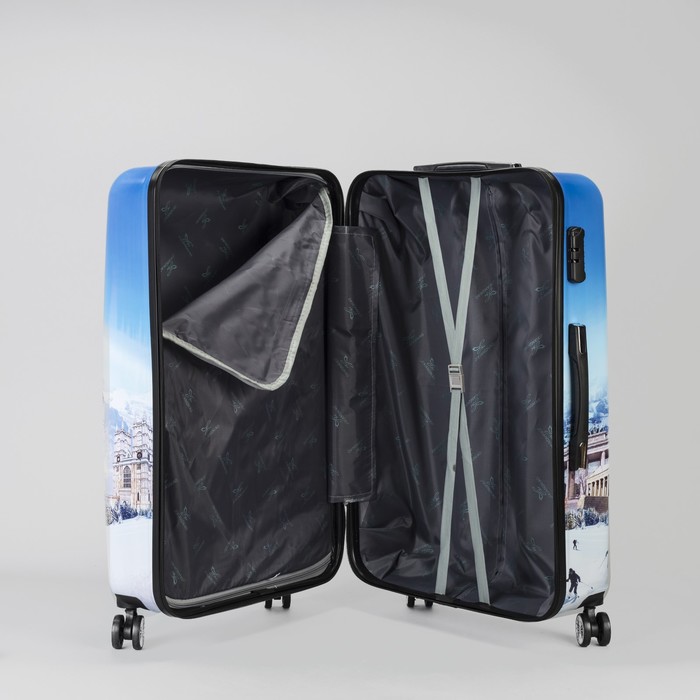 Чемодан большой «Европа» 28", отдел на молнии, кодовый замок, 4 колеса, цвет голубой