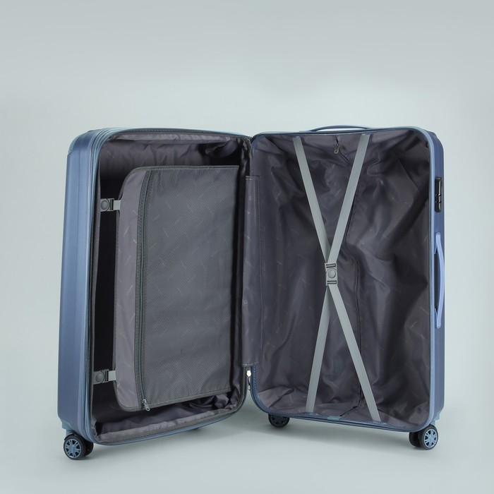 Чемодан большой "Полосы" 28", отдел на молнии, с расширением, кодовый замок, 4 колеса, цвет синий