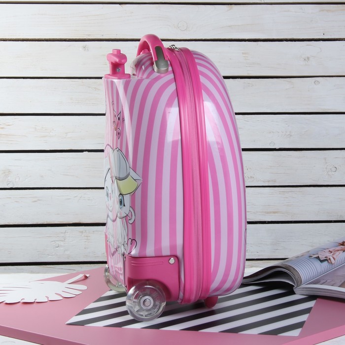 Чемодан детский «Котики», отдел на молнии, 2 колеса, цвет розовый