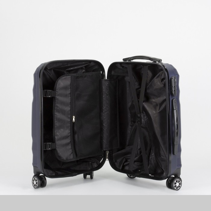 Чемодан малый 20", отдел на молнии, кодовый замок, 4 колеса, цвет тёмно-синий