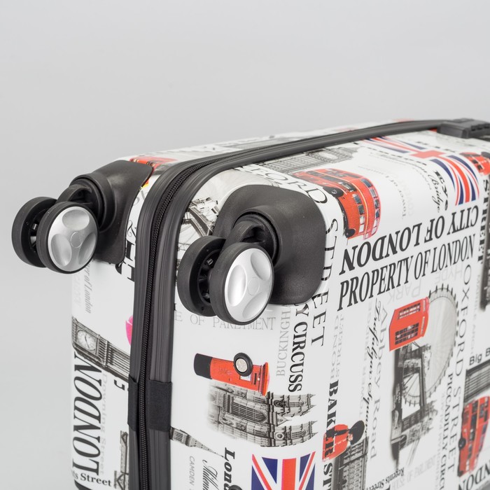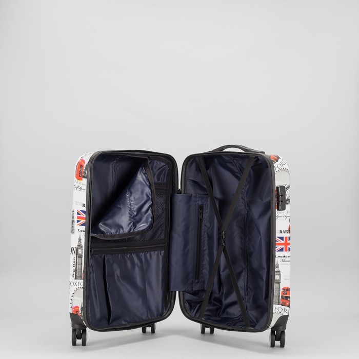 Чемодан малый "Города" 20", 42 л, отдел на молнии, кодовый замок, 4 колеса, цвет белый