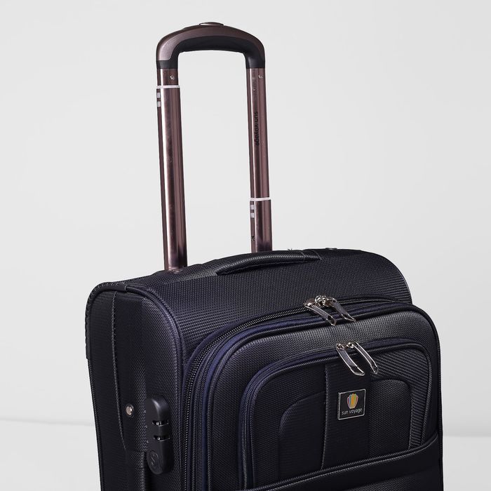 Чемодан малый на молнии, 1 отдел, 44 л, 2 наружных кармана, 4 колеса, кодовый замок, цвет тёмно-синий