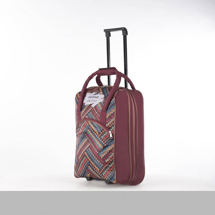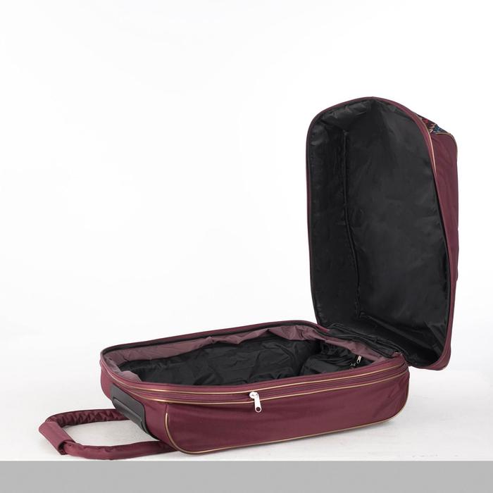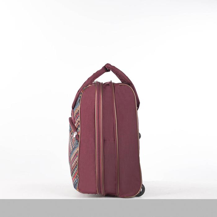 Чемодан малый с сумкой "Плетение", отдел на молнии, наружный карман, цвет бордовый