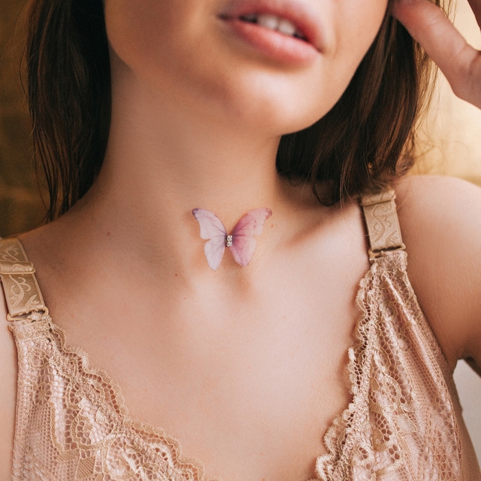 Ни один стиляга не будет выглядеть современно без искусно подобранных украшений, которые завершат его образ! Бижутерия — это современная недорогая альтернатива изделиям из золота и прочих драгоценных металлов. Чокер Butterfly на леске, цвет бело-розовый в серебре — это то, что добавит вам шарма!