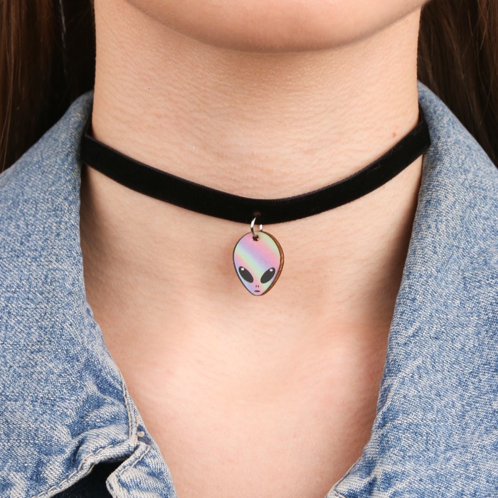 Ни один стиляга не будет выглядеть современно без искусно подобранных украшений, которые завершат его образ! Бижутерия — это современная недорогая альтернатива изделиям из золота и прочих драгоценных металлов. Чокер с подвеской "Инопланетянин" — это то, что добавит вам шарма!